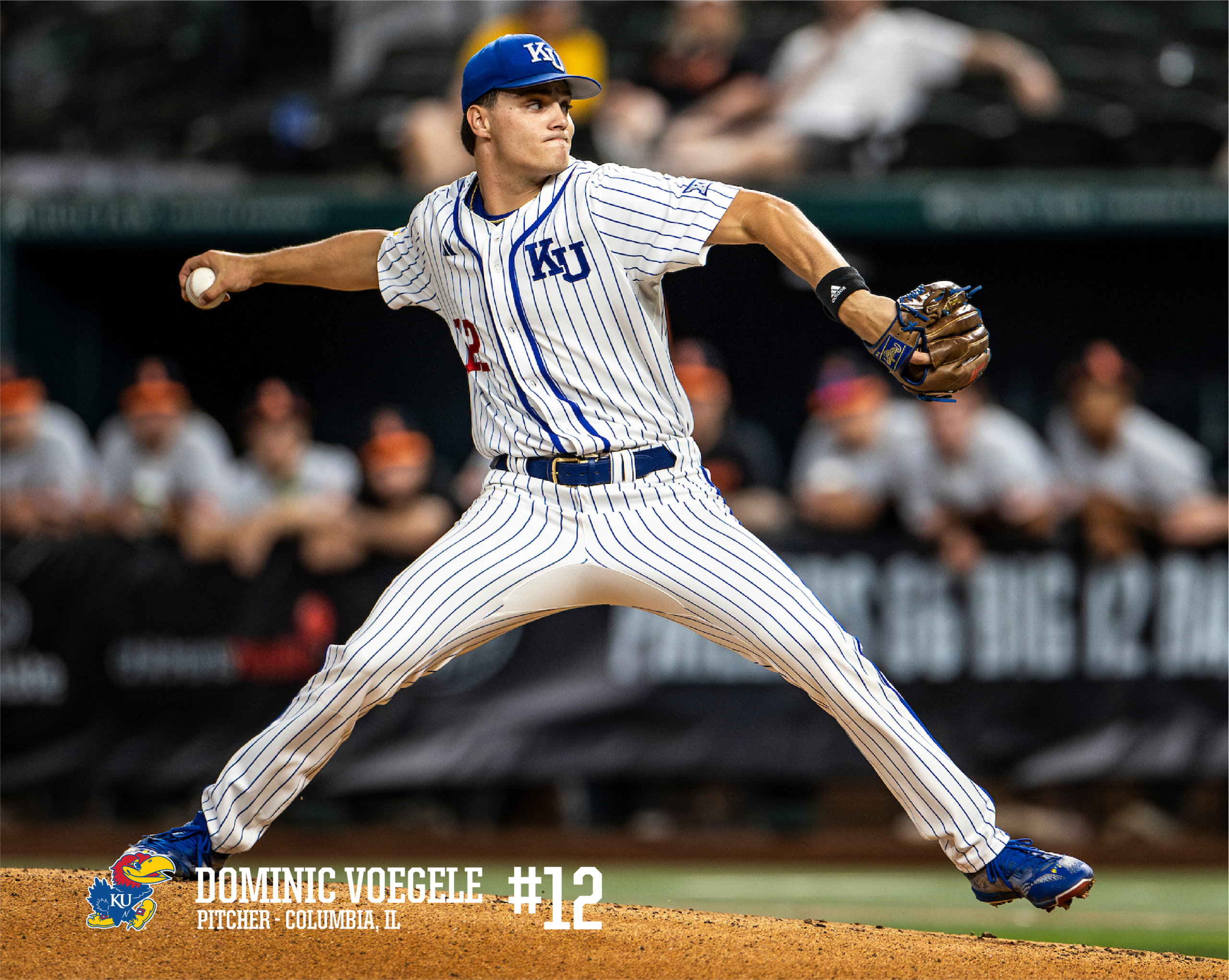 Autographed signature of Jayhawk All-Star Pitcher Dom Voegele. Voegele is a Preseason All-Big 12 Team selection and No. 11 Draft MLB Prospect for the 2026 by Big 12 D1 Baseball.
